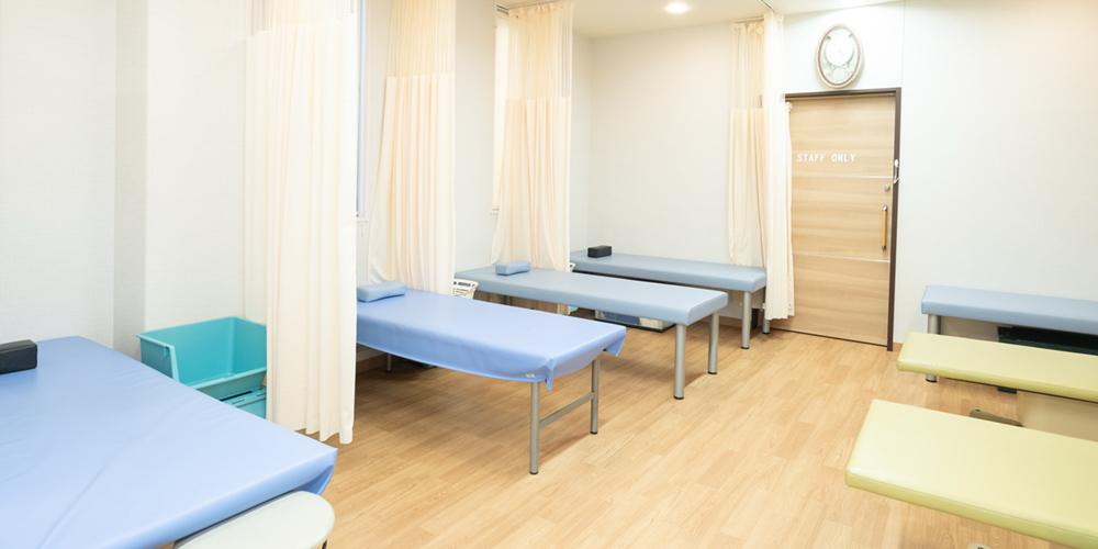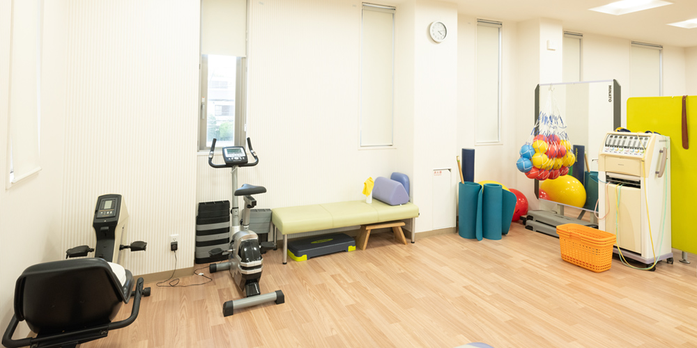 当院では、医師の指導のもと、理学療法士によるリハビリテーションをご提供しています。運動器に何らかの障害や制限がある患者さんを対象に、運動療法や理学療法などを組み合わせ、日常生活動作の改善を目指した治療を行っています。